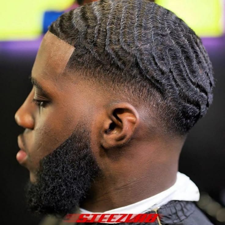 It’s ideal for someone who wants a bold, standout style. The burst fade with design can vary from subtle linework to intricate patterns, adding creative flair.